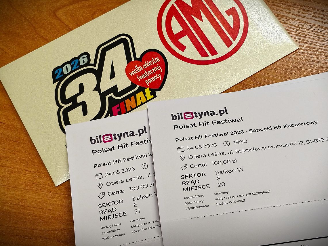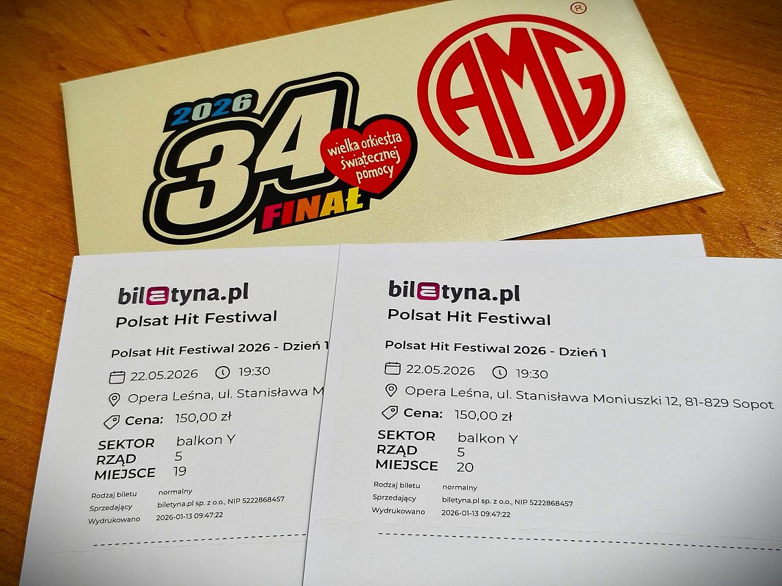 bilety na Polsat Hit Festiwal 2026 dzień 1 oraz Kabareton - przekazała firma AMG z Lęborka,