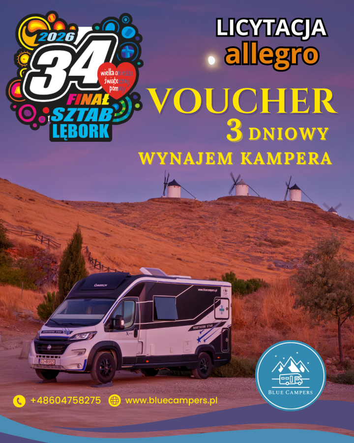 Voucher na 3 dniowy wynajem kampera - na licytację przekazała firma Blue Campers z Nowej Wsi Lęborskiej,