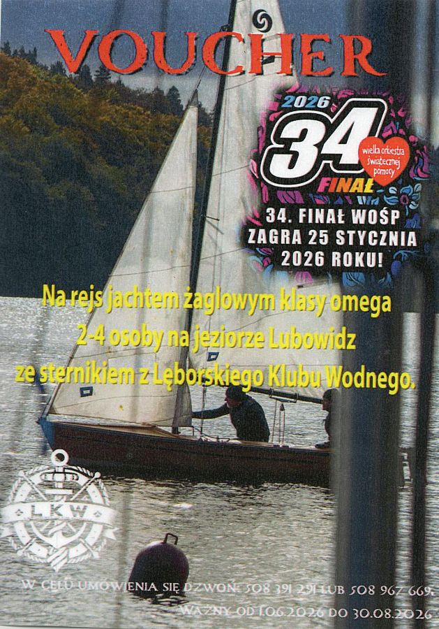 Voucher na rejs jachtem żaglowym na Jeziorze Lubowidz - przekazał Lęborski Klub Wodny,