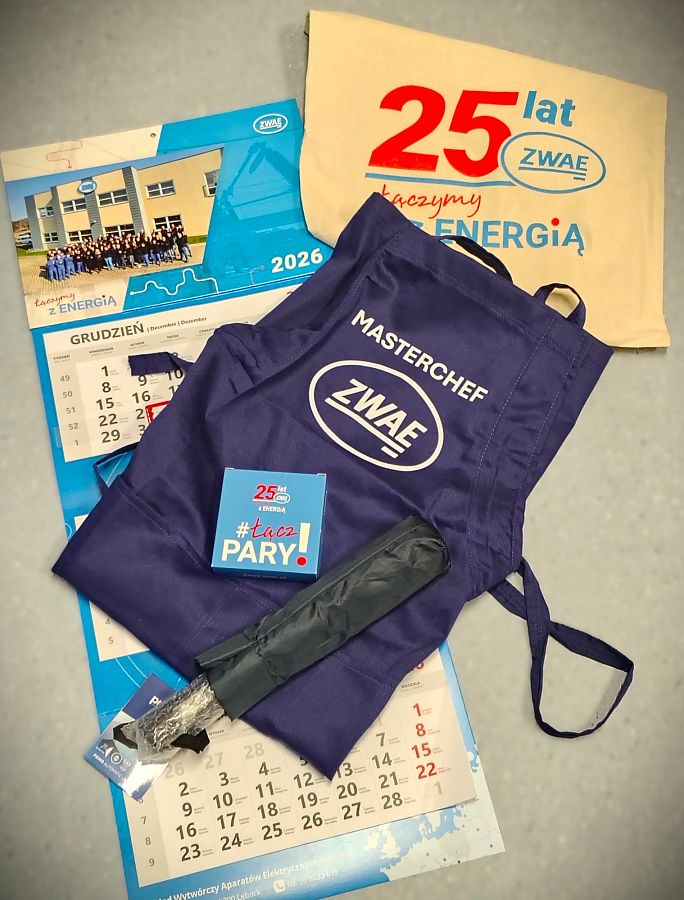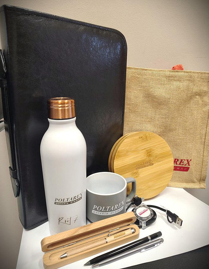 Zestaw gadżetów promocyjnych firmy POLTAREX oraz ZWAE z Lęborka,
