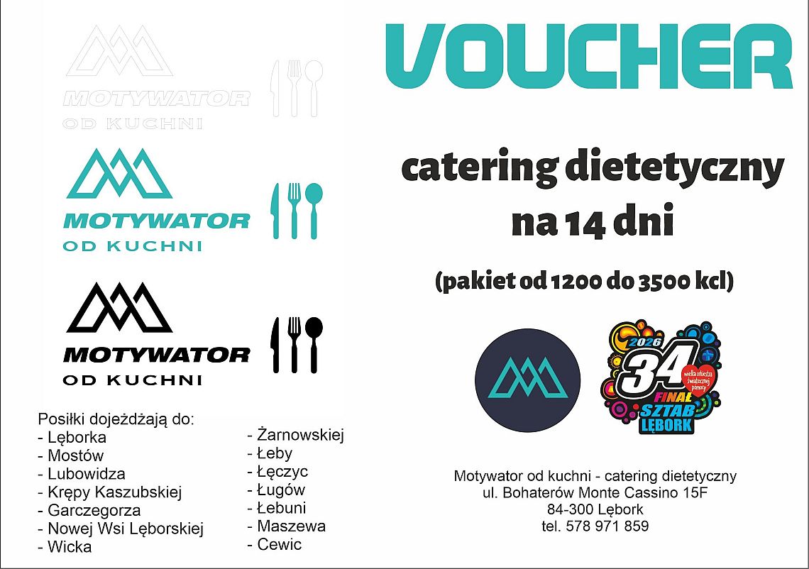 Voucher - catering dietetyczny na 14 dni (kaloryczność 1200-3500) - na aukcję przekazała firma Motywator Aleksandra Czarnota z Lęborka,