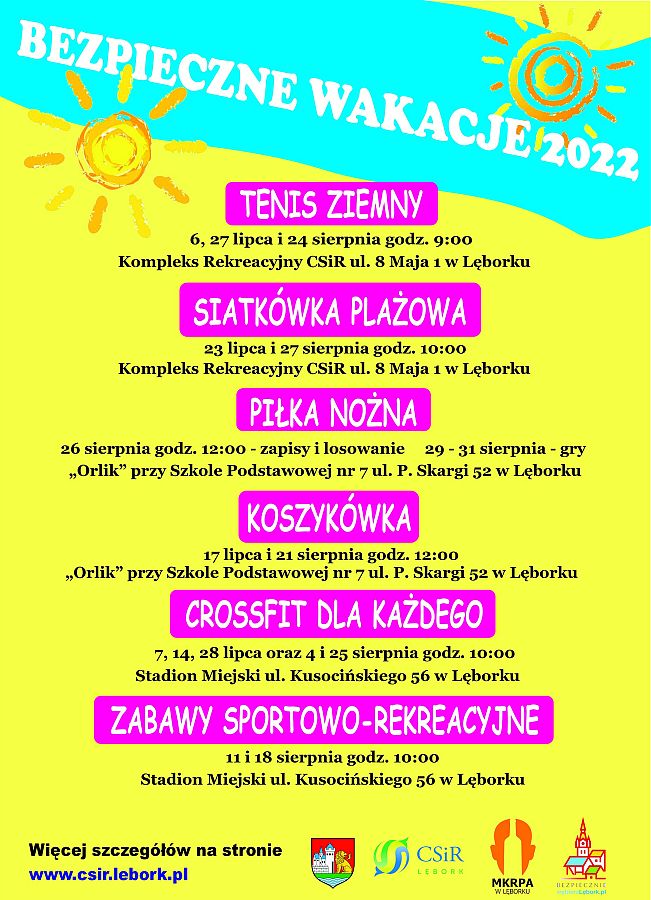 Zabawy mają charakter otwarty i przeprowadzone zostaną na Stadionie Miejskim w Lęborku przy ul. Kusocińskiego 56. Każde zajęcia rozpoczynają się o godz. 10:00 i będą trwać około godziny.